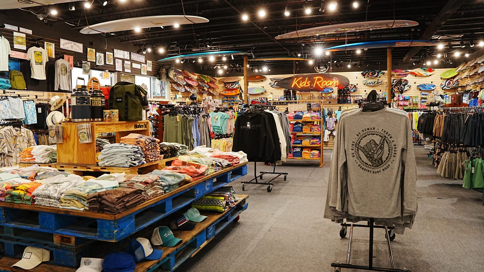 E-commerce product page and store layout designed for Sunrise Surf Shop.